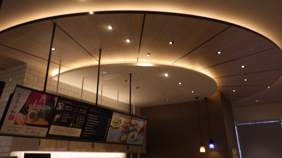 カフェの照明設備工事を実施しました。